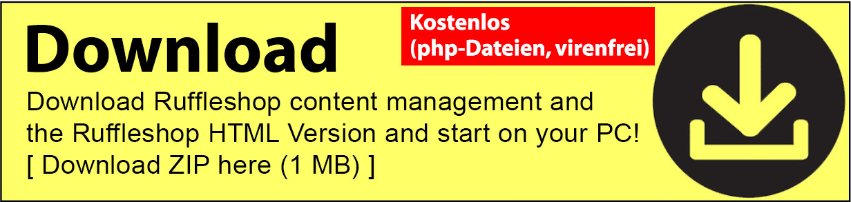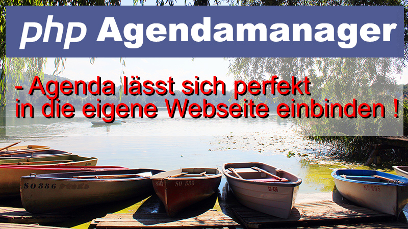 Gehen Sie auf ein Verkaufsportal von uns und öffnen Sie so einen Ruffleshop in einer der fünf angebotenen Farbe heute noch. Sie können dort den Warenkorb mal testen und absenden. Das Mail an uns löst keinen Auftrag aus, das ist ja nur zum Testen in einem Mustershop. Der Ruffleshop beträgt ein ZIP mit 80 Dateien, wenn er gepointet zu Ihnen kommt per Mail nach dem Kauf. Das Content-Management dazu bieten wir Ihnen vor dem Kauf zum Testen an. Bitte laden Sie dieses Content-Management herunter und laden Sie diesen Ruffleordner hoch auf Ihren Server in einen beliebigen anderen Namen, oder belassen Sie es beim Namen «ruffleshop». Dann können Sie mittels Content-Management bereits vor dem Kauf Artikel konstruieren und mit der Arbeit beginnen. Wir senden Ihnen dann nach dem Kauf das komplette ZIP mit den gepointeten zwei Kernels zu und den persönlichen benannten PHP-Dateien für Content-Management und das Warenkorb-PHP. Hier bitte CMS downloaden:  91 Der PHP-Agendamanager ist kompatibel mit jeder Webseite in PHP und Agendadaten lassen sich leicht in die eigene Webseite einbinden