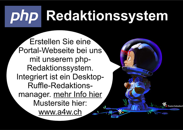 So ist in unserem Webdesign für Kunden unser Produkt «PHP-Redaktionssystem» ganz ohne Ruffle ausgerüstet unter www.a4w.ch. Dort läuft nur eigenes PHP also. Auch der Agendamanager, ein selbständiges Produkt von uns in PHP geschrieben läuft praktisch auch ohne Ruffle. Bei beiden Produkten ist aber ein Desktop-Ruffle-Manager mit dabei. Es ist einfach schöner und viel schärfer, mit so einem Ding zu arbeiten im Büro, als mit einem PHP-Formular, welches man langweilig findet.